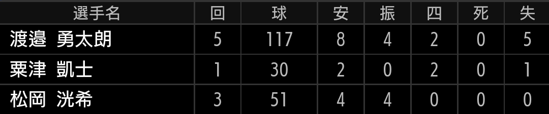 5回に味方エラーに足を引っ張られ、一挙5失点です。先日の1軍では、右打者には良い投球をするものの、左打者に対してはアウトハイに抜ける悪癖が変わっていませんでしたが、今日もその傾向がありました。
