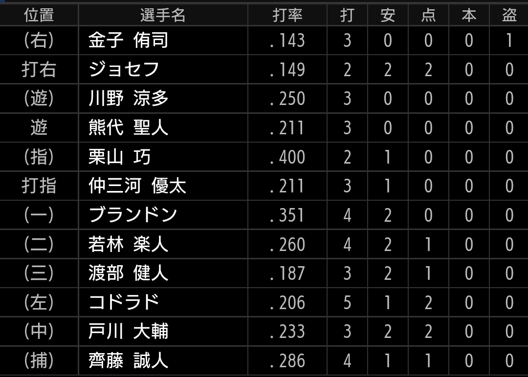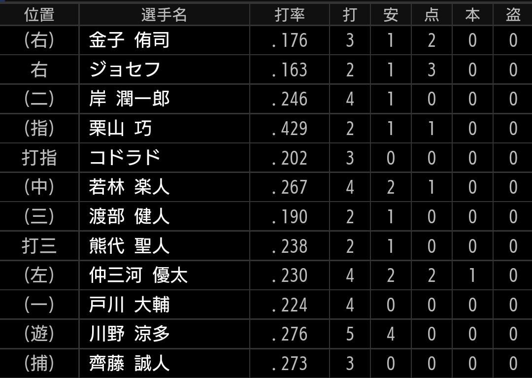 渡邉投手がエラー絡みで5失点しましたが、14安打10得点と昨日に続いて打線が良く打ちました。