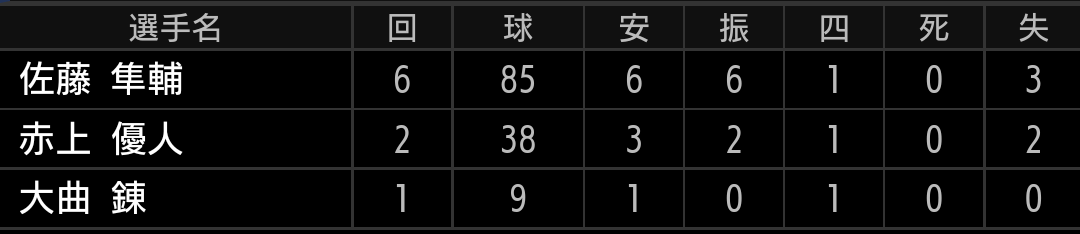 6回3失点ですが、6奪三振と今日は空振りも多く取れました。力強いストレートを投げていましたし、甘く入ると打たれましたが、スライダーでも空振りが取れたのは良かったです。