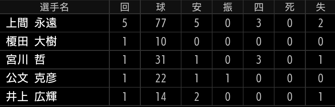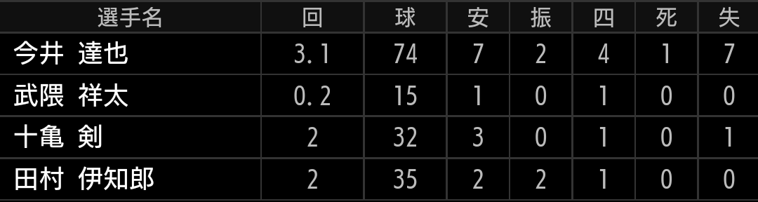 先発投手なのでもう少し長い回を投げてもらいたい所でしたが、続投させた事で残念ながらさらに失点に繋がってしまいました。