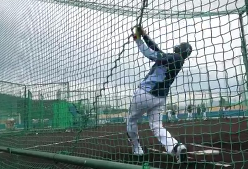 室内練習場には #篠原響 投手 の姿がみえます⚾