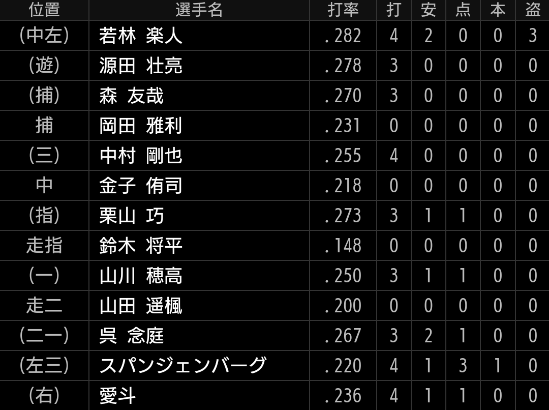 辻監督が昨日、山川、スパンジーは上がってきたとコメントしていたように、スパンジーがやってくれましたね。