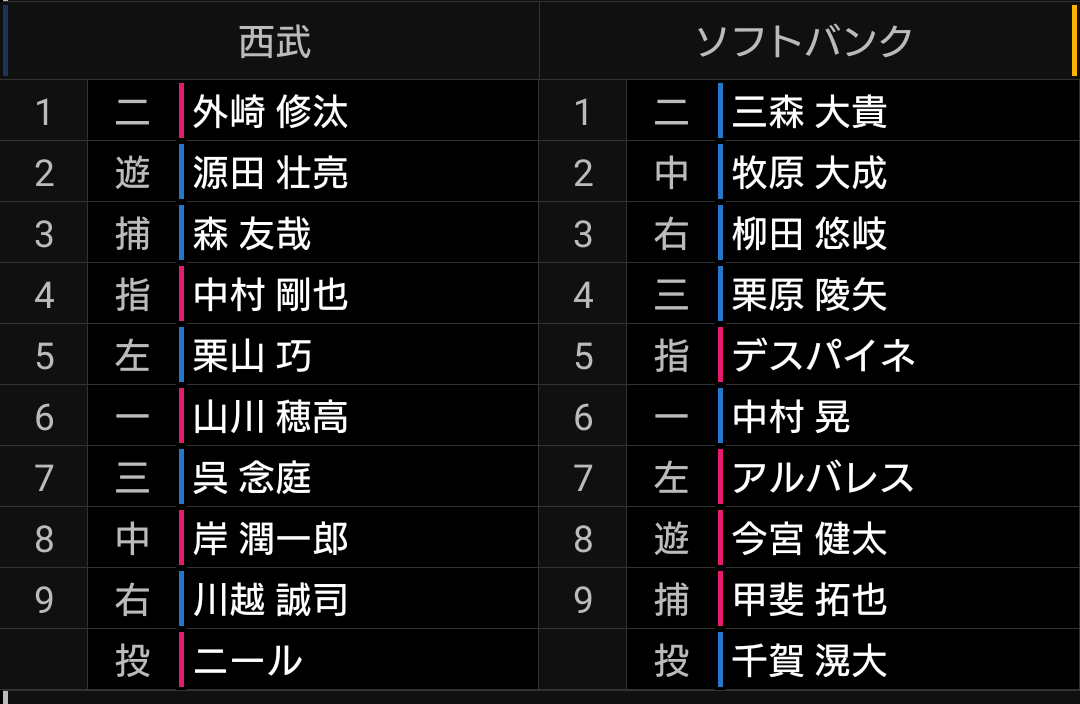 千賀相手なのできついと思いますが、スタメンを代えようがないのであれば、後は作戦次第です。