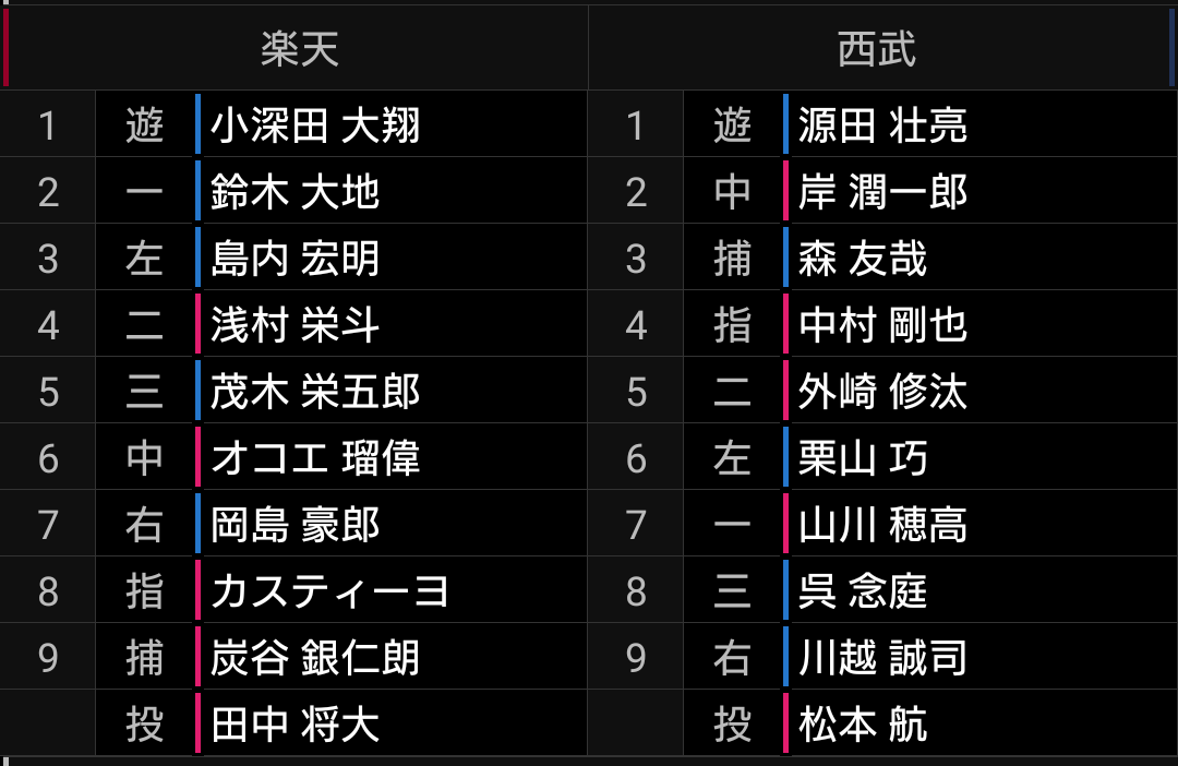 ライオンズ生え抜きとしては、初の快挙間近です。球団もファンも心待ちにしています。チームメイト、首脳陣たちは勝ち試合で華を添えたいですね。呉がスタメン復帰です。