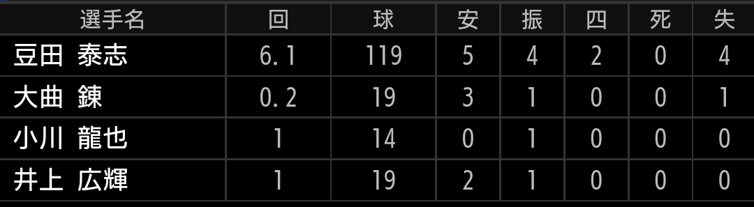 ワンアウト2、3塁で登板。立ち上がりはスライダーで三振を取りますが、そこから3連続タイムリーを浴びました。後半戦は減りましたが、打たれだすと止まらなくなる傾向があります。