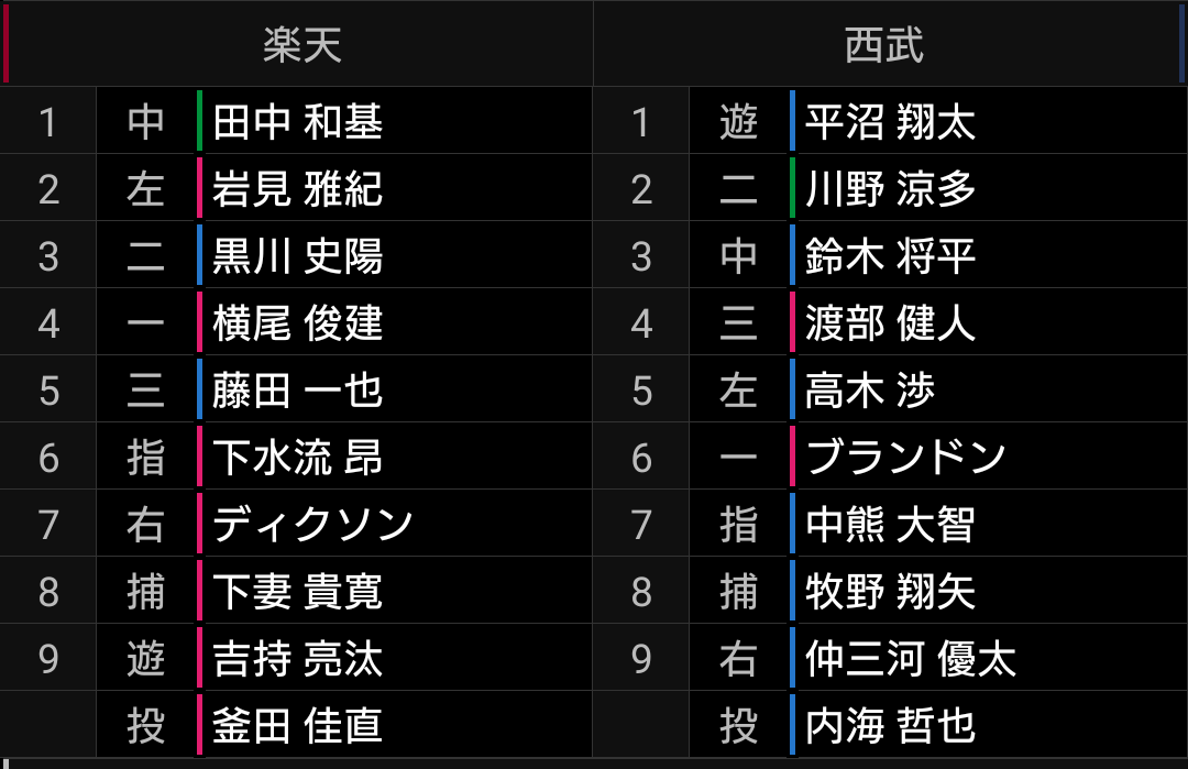 楽天先発釜田の前に、7回7安打放つも2得点6三振と、決めきれませんでした。