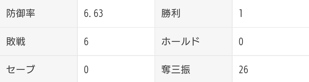 先発ながら5回を持たず、四球率もかなり高い散々な結果となりました。