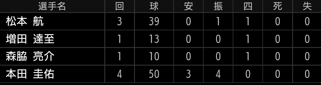 勝負強さだけでなく、選球眼も武器の選手ですので、今季もその強みを活かし、栗山選手のような打者になってもらいたいです。個人的には、レフトでの出場も増やして、攻守共に栗山選手の後釜になってもらいたいです。今日は、若手野手もアピールをしました。