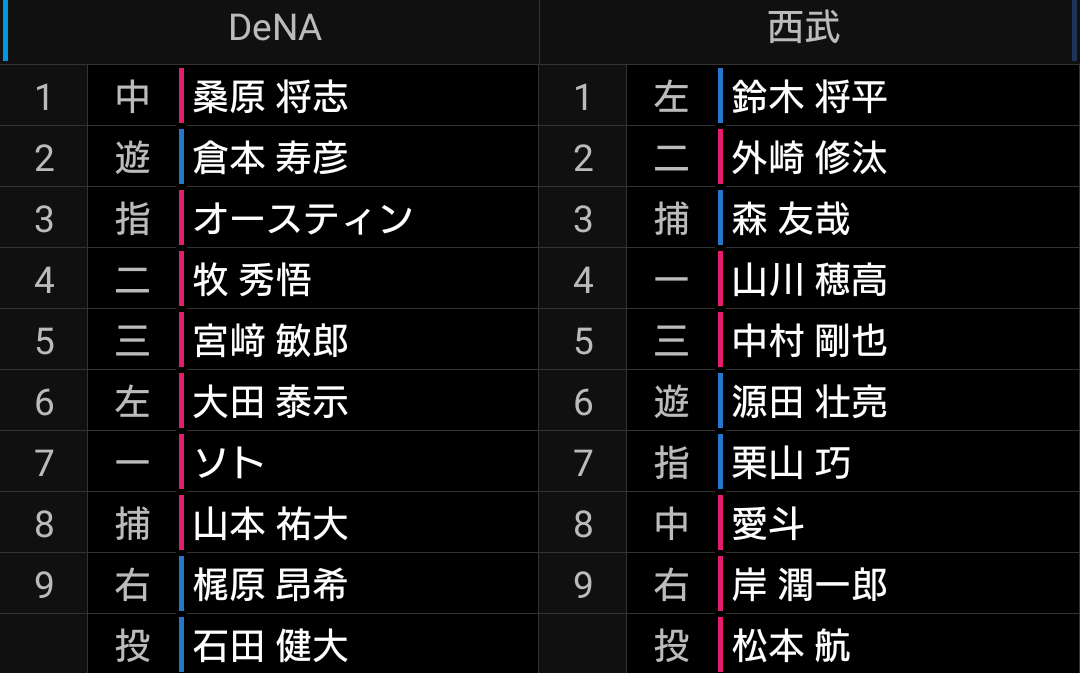ある程度の活躍は見込める、実績のある中村、栗山選手の間は、打順を打線とする重要な繋ぎ役です。今までは、外崎選手が担うことが多かったですが、源田選手も、秋山と浅村の間を担う繋ぎ役としての経験もありますし、お試しですね。シーズン中では見られない打順ですが、今のライオンズ打線は固定する必要もないので、色々試すのは良いと思います。