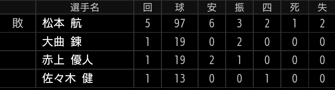 球速は140前半程度でしたが、空振りも取れていましたしスピンの効いた松本投手らしいストレートの質ではありました。球速に関しては、前回は140後半も出せていましたし、力を入れれば投げられる状態だと思うのでシーズン入れば上がってくると思います。
