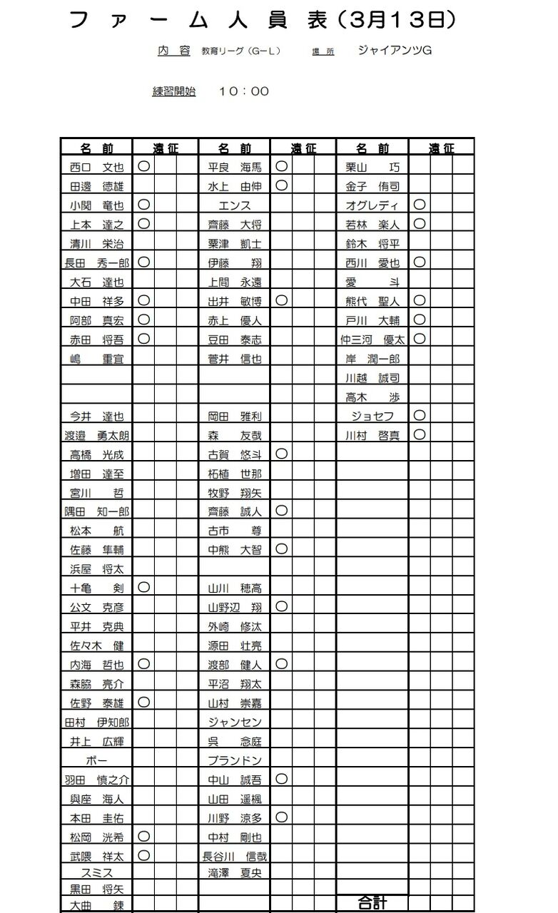 ファームは本日試合はなく、明日巨人戦となります。