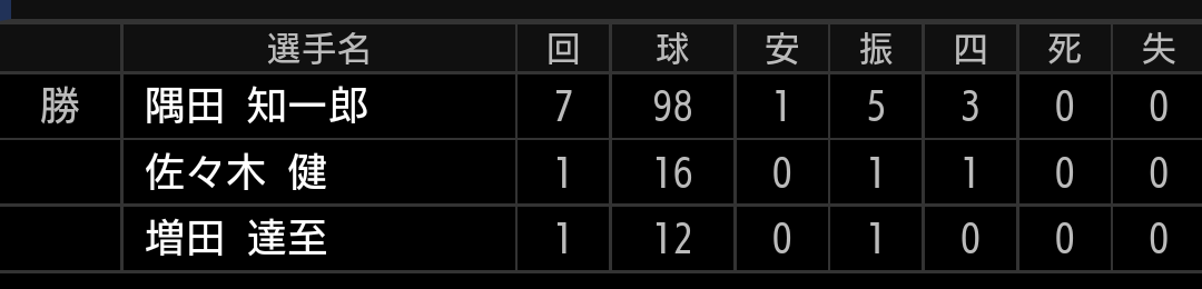 隅田投手、プロ初勝利おめでとうございます。