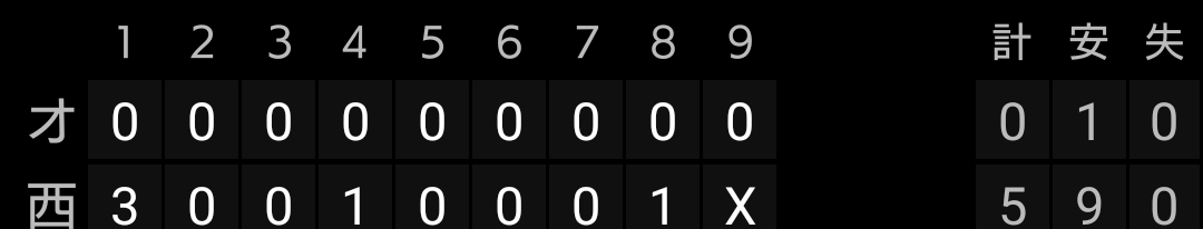 オリックスのクリーンアップを3人で終わらせました。ストレートゴリ押しの増田投手らしい投球を見せました。杉本選手からストレートで三振を奪うなど、力も入ってました。
