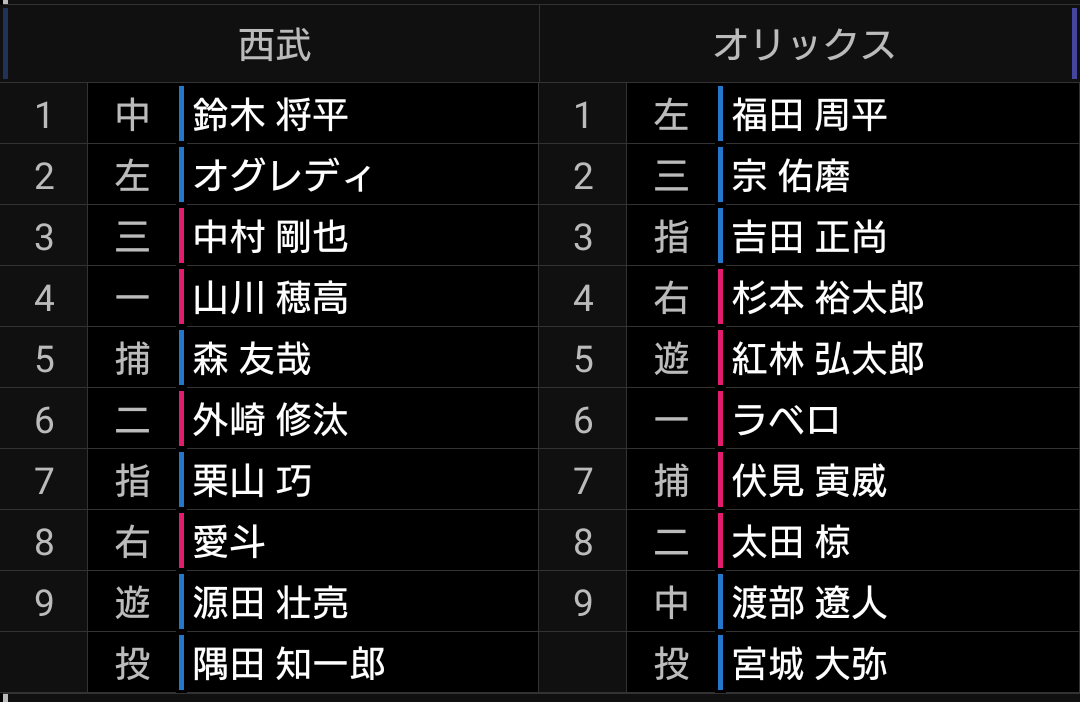 楽に投げられるように打線が明日も奮起して、渡邊投手には隅田投手のように、ライオンズの明るい未来を見せてくれる投球を期待したいです。
