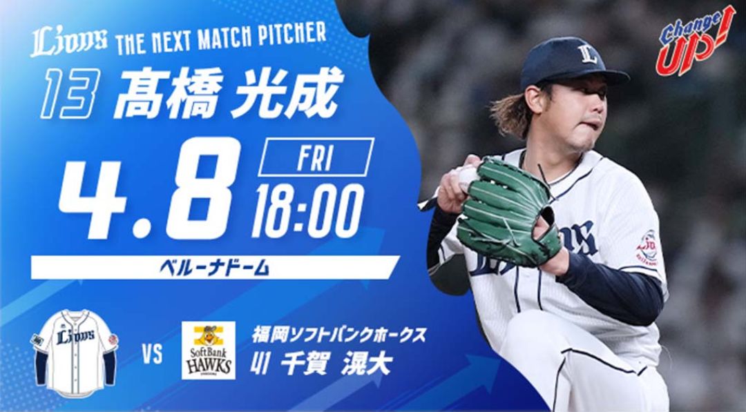 昨年は、ライオンズ戦3戦3勝、防御率0.87、奪三振率8.71、QS100%と全く打てませんでした。