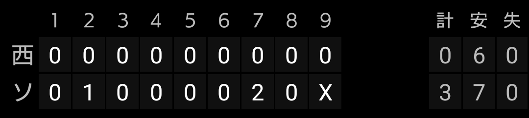 しかし、4、5、6回と毎回先頭打者を出しますが、得点には至りませんでした。