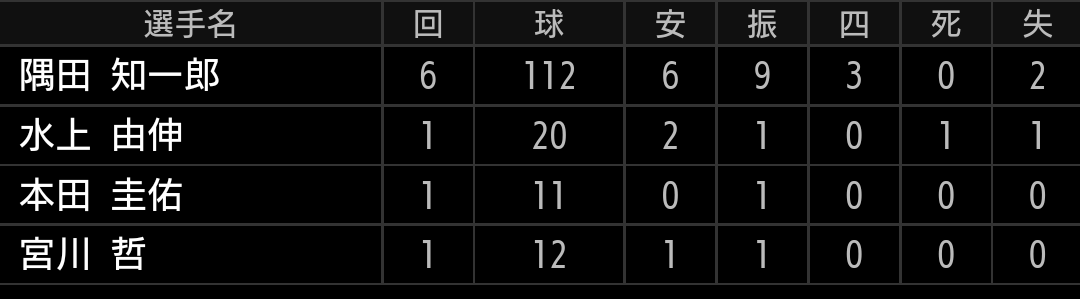 しかし、隅田投手登板時の援護点1.67と、頼りない打線がやっぱり援護出来ませんでした。