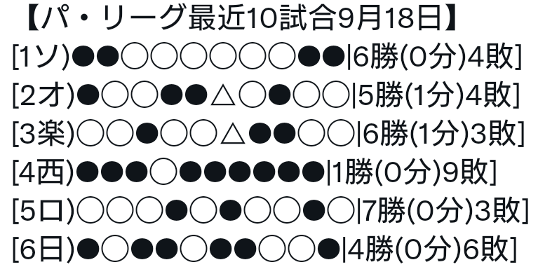現在首位のソフトバンクは貯金10ですので、ソフトバンク、オリックスが勝ち続けたのではなく、ライオンズが離脱してしまったという結果です。