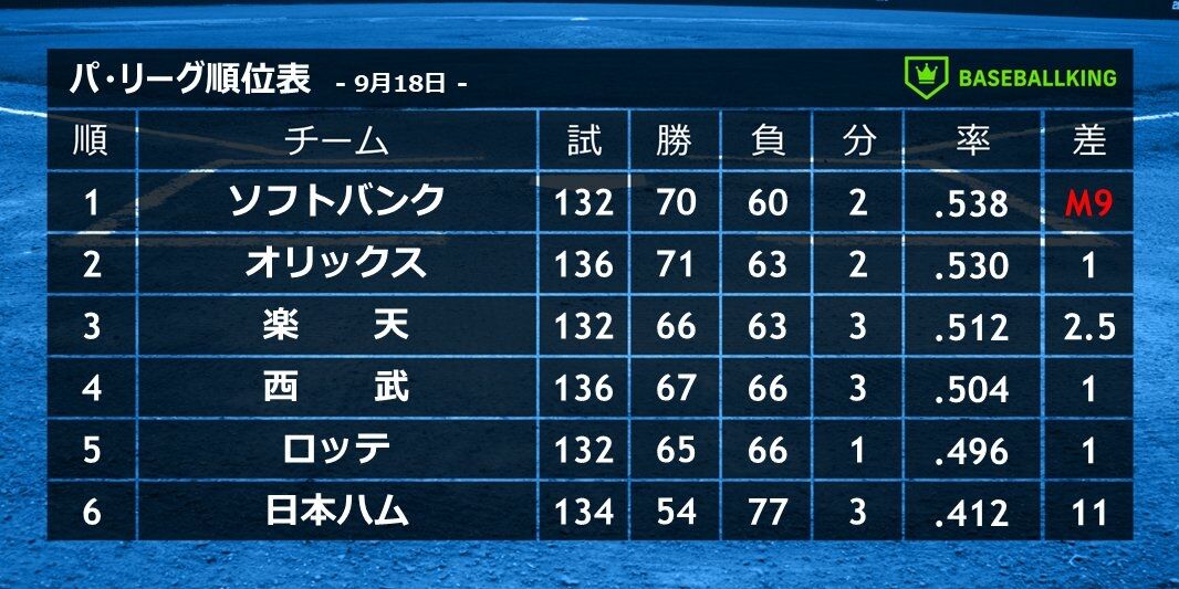 パ・リーグ順位表です。
