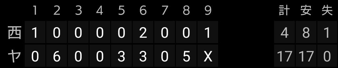 今日は投手陣が大乱調で17失点の大敗です。