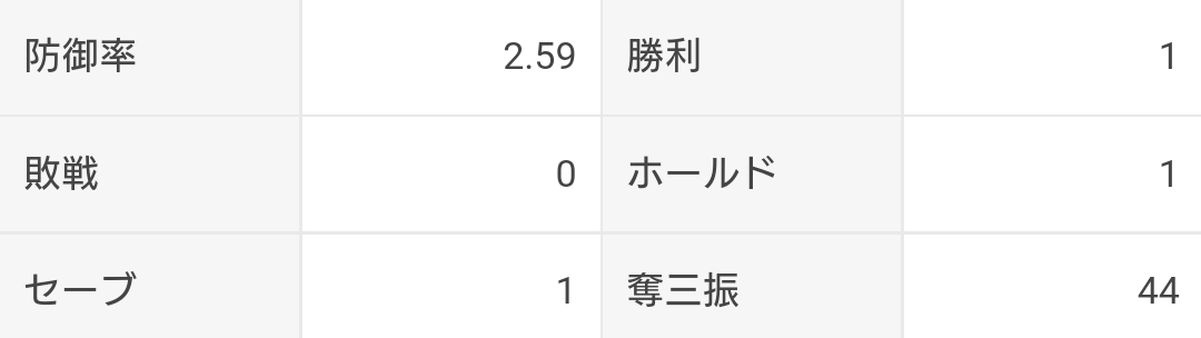 昨年の絶不調からは回復しましたが、主に敗戦処理を任されるシーズンとなりました。