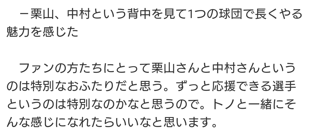 ライオンズの精神的な支えは、来季40歳を迎える栗山、中村選手の骨牙コンビから、トノゲンに受け継がれて行く流れになりそうです。