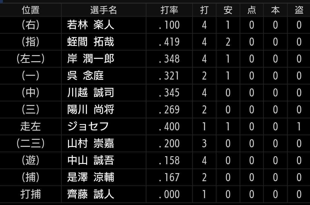 山川選手にアクシデントがありましたので、次カードから昇格させたいです。四球も選べていますし、長打も出るようになったので1軍でも期待したいです。