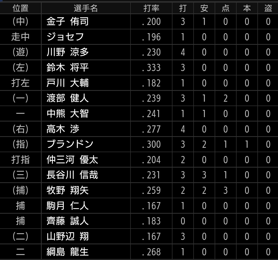一時期イースタンで無双していた時と比べると、調子はそれ程良くはない投球です。1軍相手だともう少し打たれそうな内容でしたので、次回登板までに状態を上げたいです。