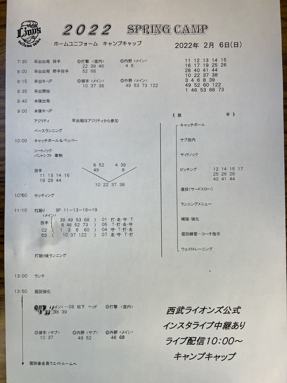 — 埼玉西武ライオンズ (@lions_official) February 6, 2022