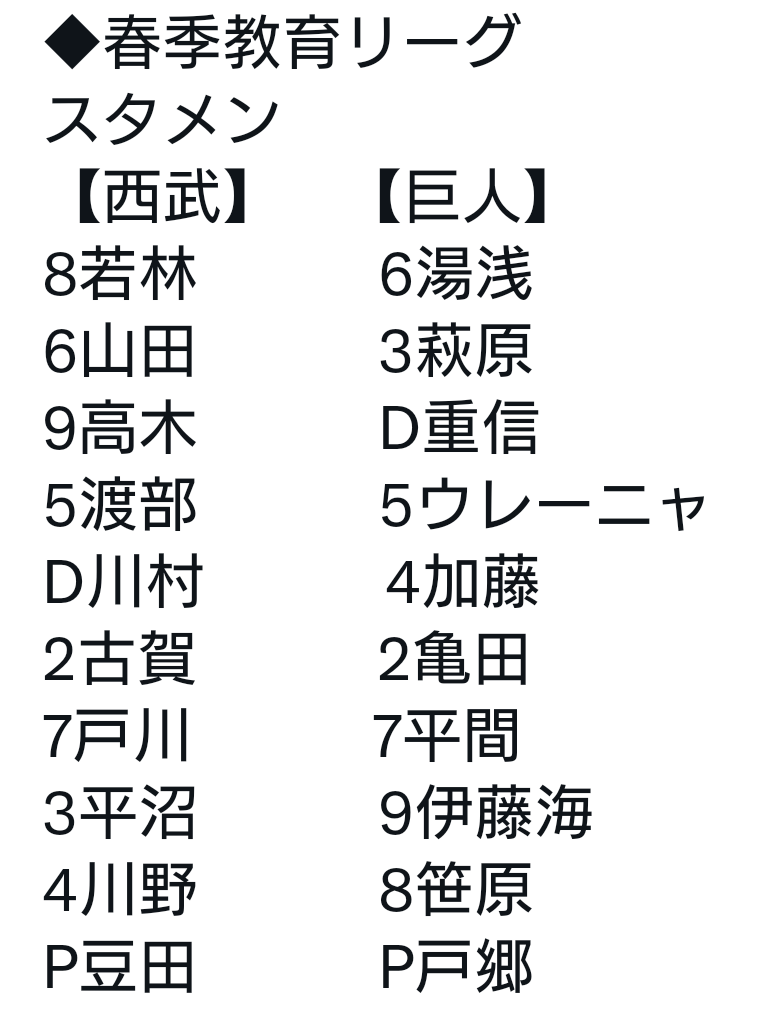 今日のファーム巨人戦では、先日2ホーマーの高木渉選手が結果を出していますし、他の若手もアピールしたいです。