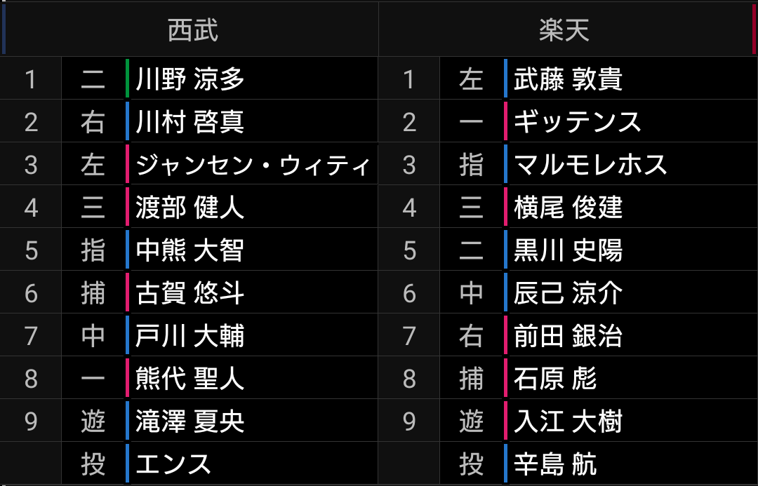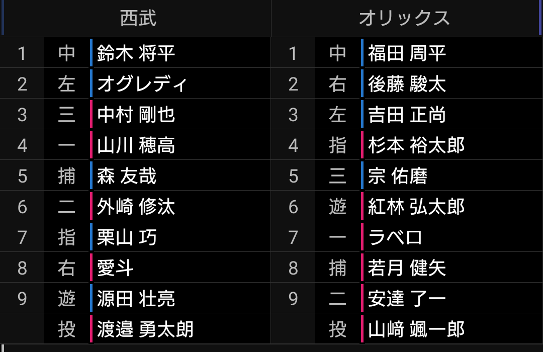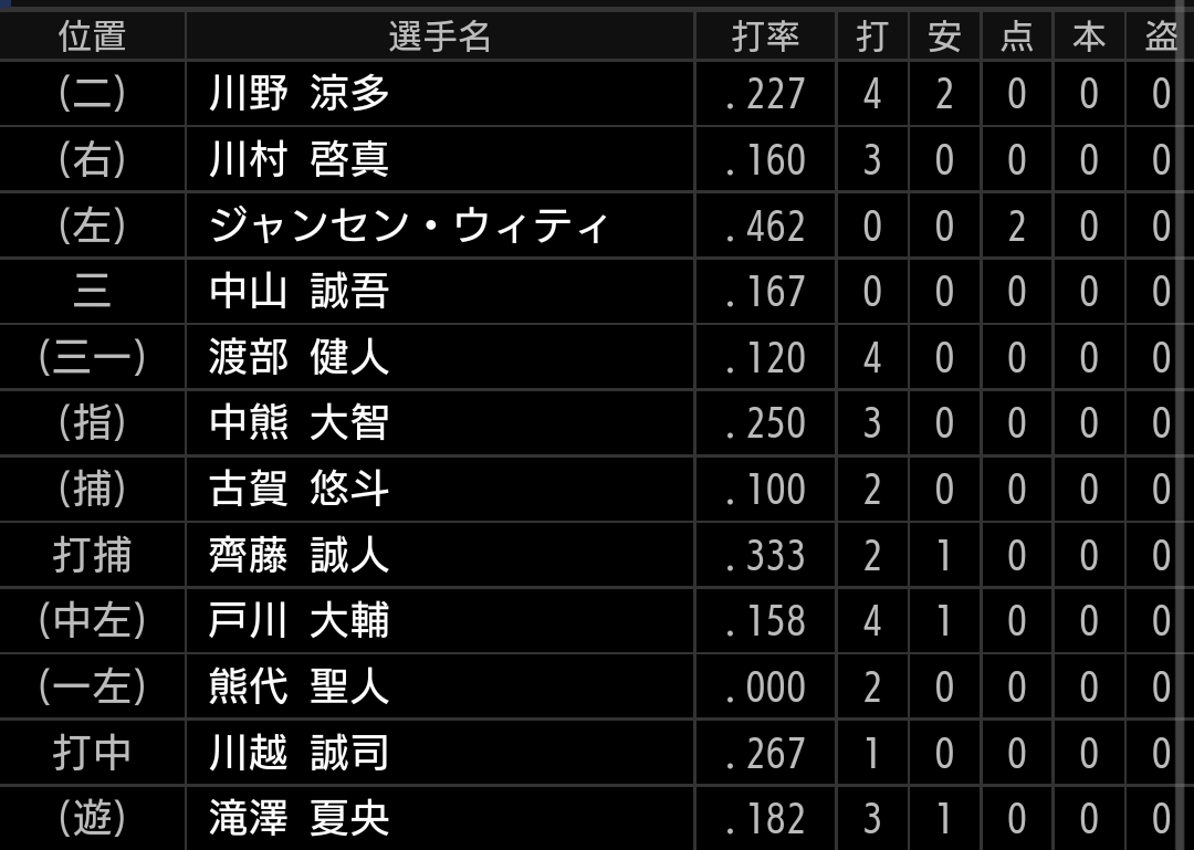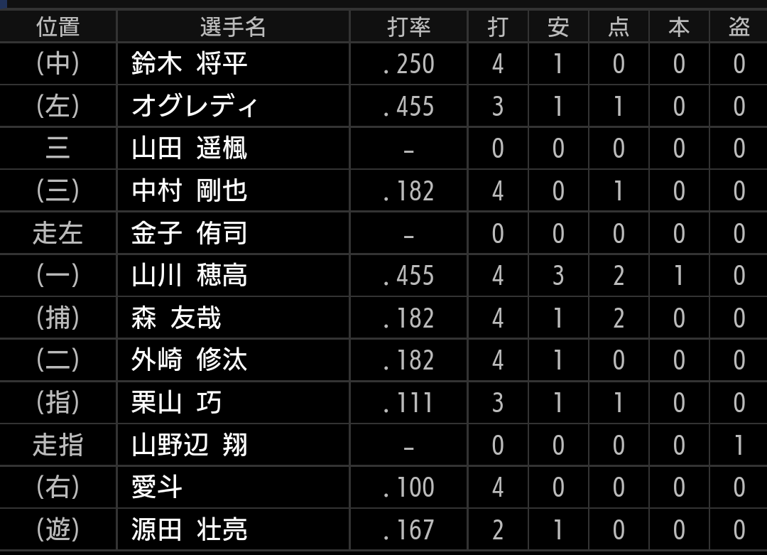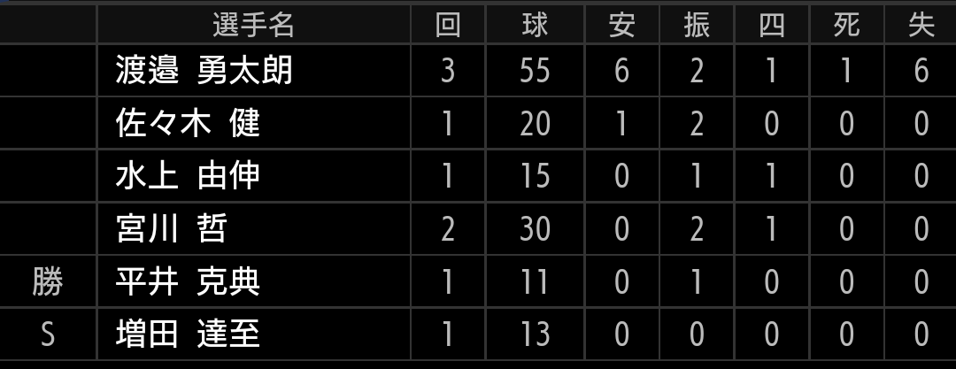 隅田投手には5点取ると約束し、有言実行した頼れる野手陣ですので、佐藤投手にも5点プレゼントする事をモチベーションに、打ち勝ってもらいたいです。