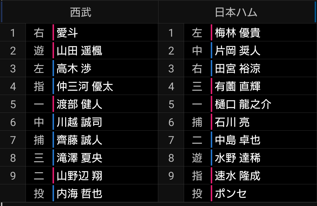 今日もベンチ入り投手は、與座、松岡、赤上投手のみと少なかったので助かりました。