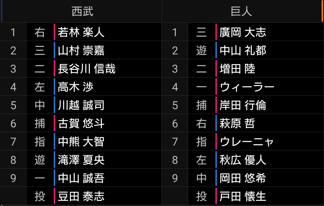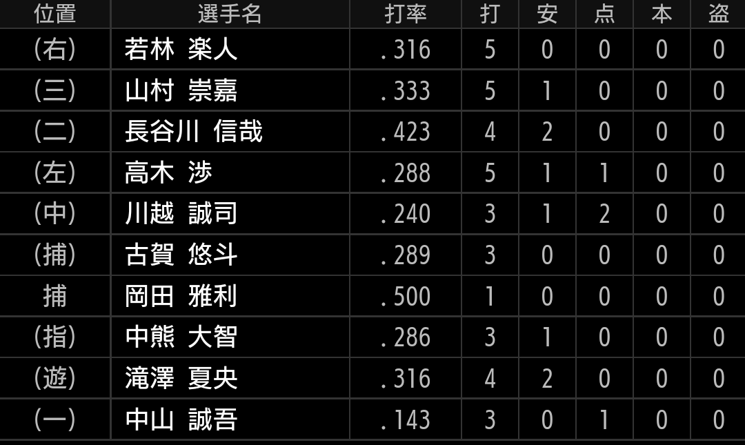 個人的には、長い回を投げられるか不透明な投手も多い中の6連戦ですので、ライオンズはあまりやらないですが、第2先発的なロングリリーフを待機させておいてもらいたいです。