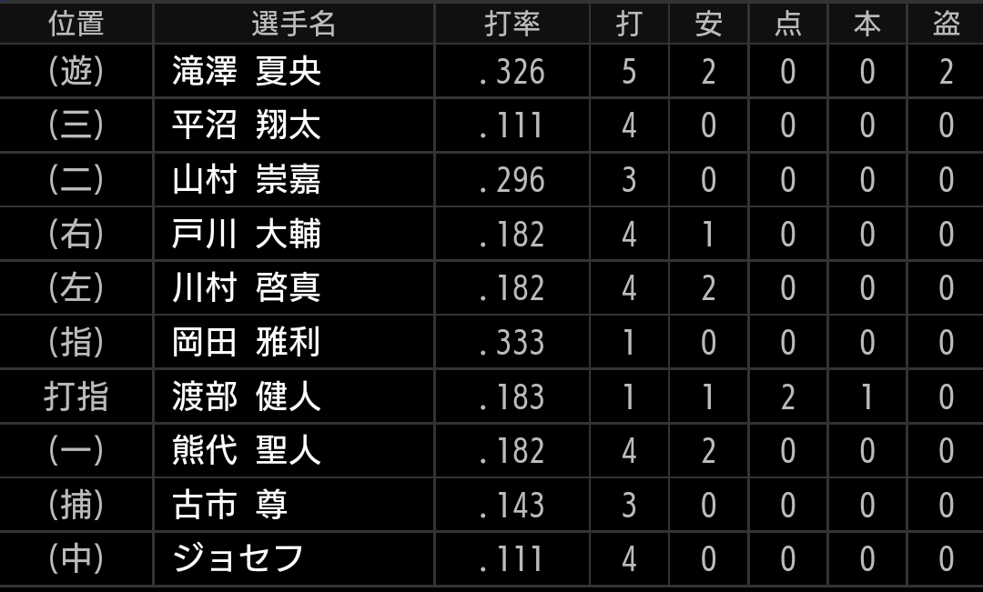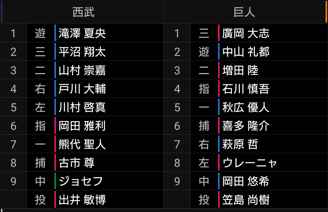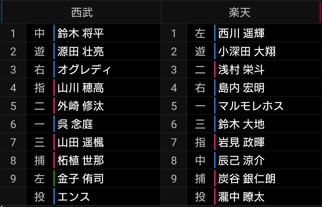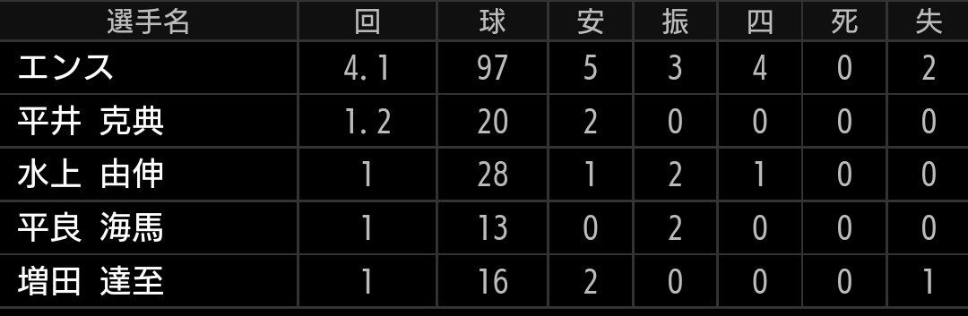 スミス、佐藤、隅田、エンス投手と新戦力が中心になるため、まだ先発として安定した投球が出来るかは不透明です。中継ぎが好調とはいえ毎試合投げるわけにも行かないので、実績も実力もある松本、髙橋光成投手が長いイニングを投げられるようにしたいです。