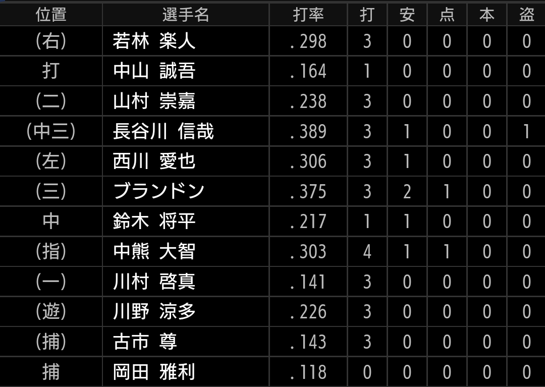 長谷川選手は1安打1四球1盗塁です。