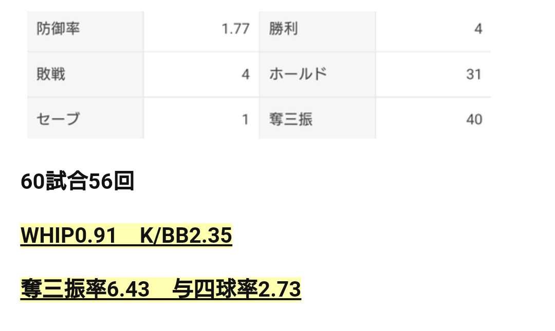 シーズン終盤に打ち込まれた事もありましたが、登板過多によりだいぶ疲弊してましたし、この辺は使う側が気をつけたい所です。