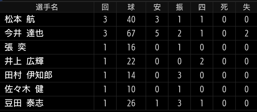 課題は得点力不足ですので、若手が複数人覚醒してくれないと厳しいです。おそらく補強はもうないでしょうから、ライオンズファンとしては若手の覚醒を信じるしかありません。