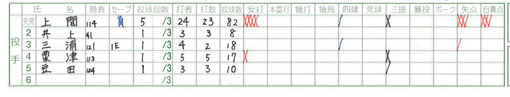 KOされた與座投手の後を受け、無失点に抑えたのは良かったですが、球は速いのですが空振りが取れないため、変化球の精度を高めてストレートを活かして行きたいです。青山
