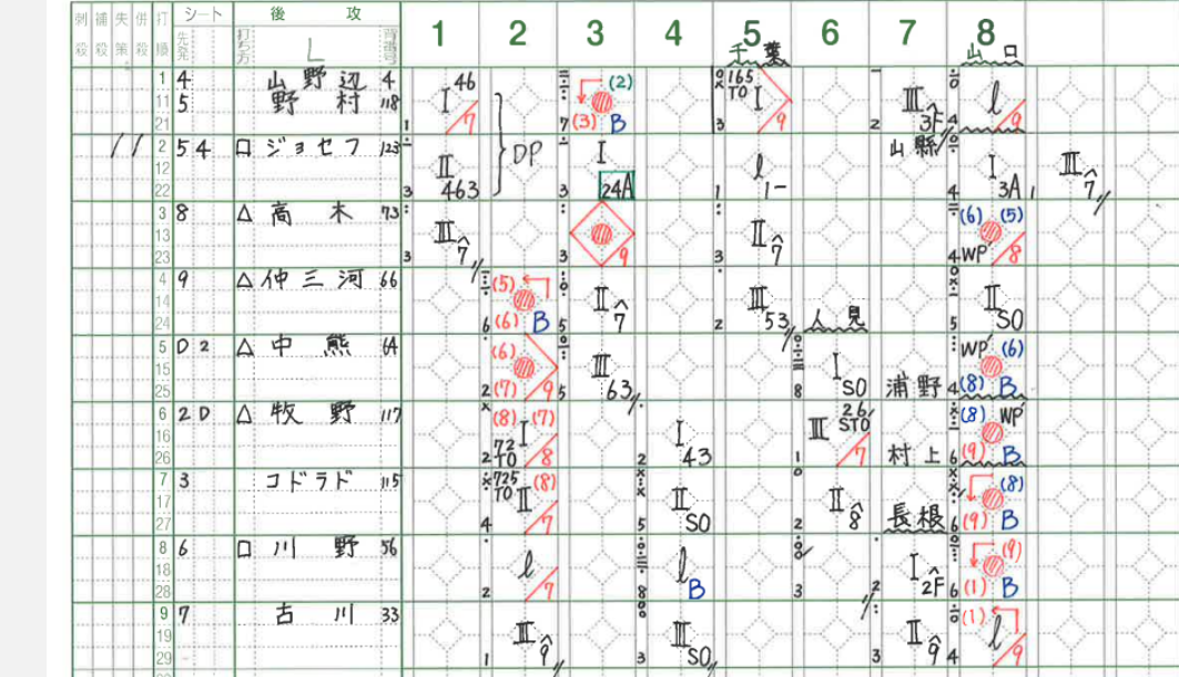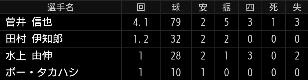 もう一押ししたかったですが、児玉、古賀選手と連続三振で抑えられこの回2点止まりでした。