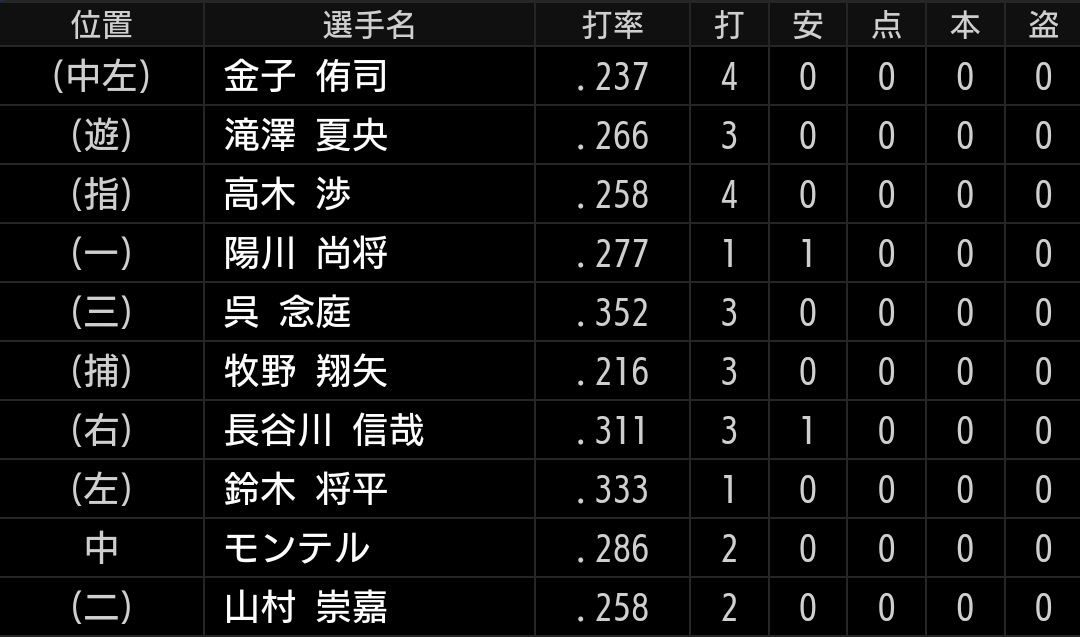 金子選手は1安打1四球2盗塁です。