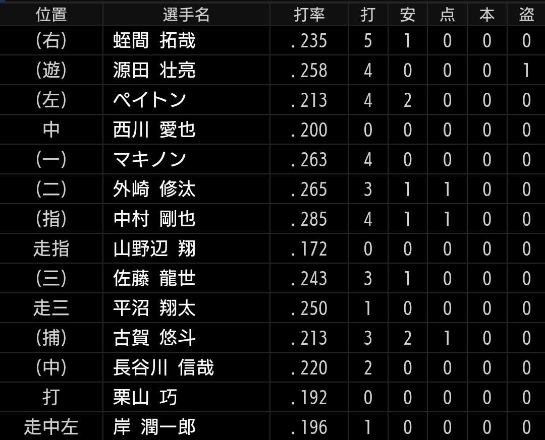 今日は、先発が抑えて打線がワンチャンをモノにするという、今季の勝ちパターンに持ち込めましたが、この得点力だと今後借金を大きく減らすのは難しいです。