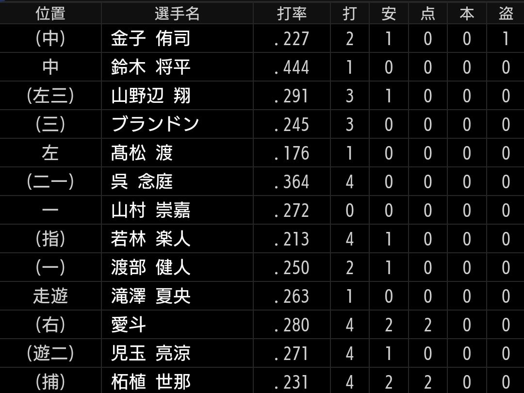 しかし、その後は5回から継投に入った楽天中継ぎ陣を打ち崩せませんでした。