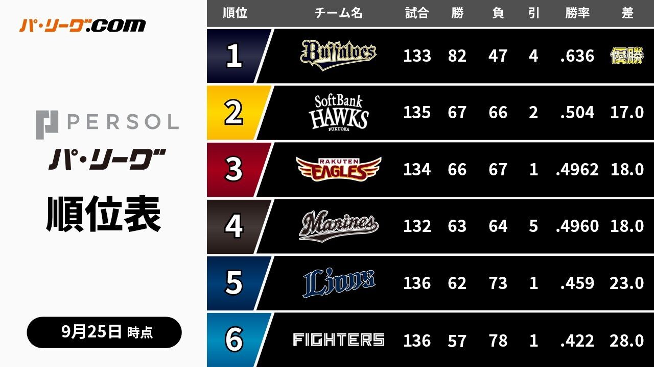 残り試合も少ない中、ソフトバンク、楽天、ロッテが5割付近でまだまだCS争いをしているパ・リーグです。