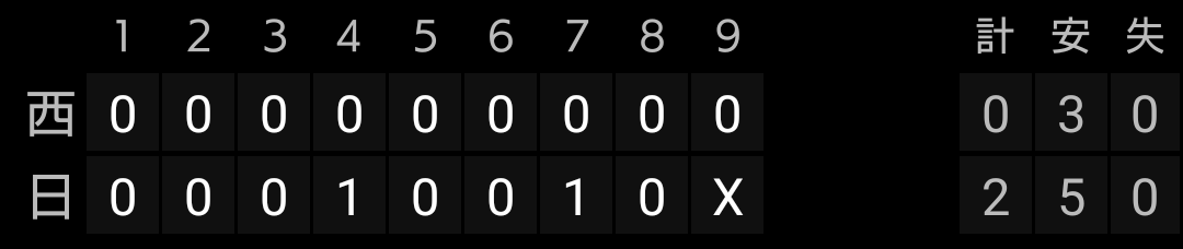 今井投手は7年目にして初の二桁勝利、マキノン選手が2打席連発を含む3安打5打点です。