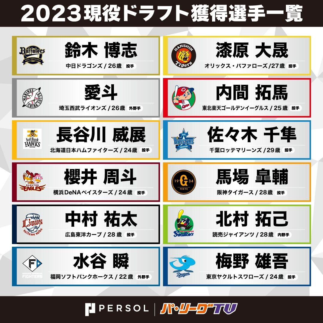 大竹、細川選手の成功もあり、今年の現役ドラフトは各球団も戦力外当落線の選手ではなく、伸び悩んでいる1.5軍クラスの選手が多く出して来ましたので、早い指名順が欲しかったですが、報道によると巨人→阪神→オリックス→ヤクルトの順になったようです。