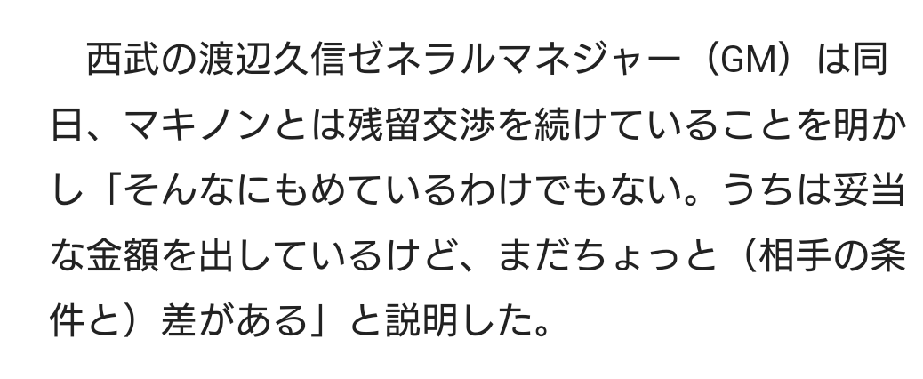 FA流出の多いチームですので、このFA残留組の優遇を見て少しでも流出が止まれば文句もないのですが、今の所、森友哉や山川穂高のような主力中の主力には影響がないのが残念です。
