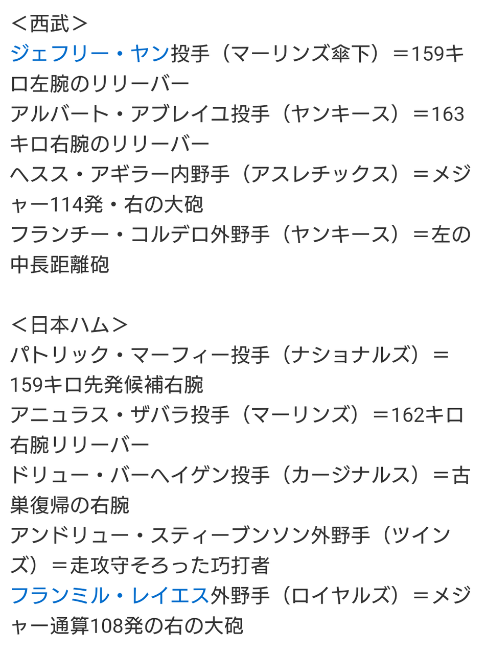ギャンブル要素が高めですが、ライオンズファンとしては外国人選手が当たりであってほしいです。