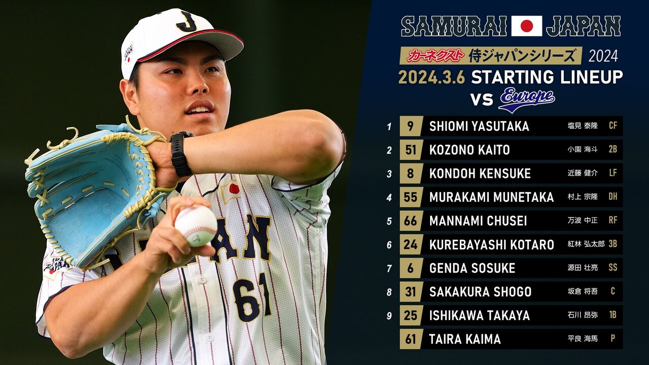 本日は、欧州代表との侍ジャパンシリーズ第1戦です。
