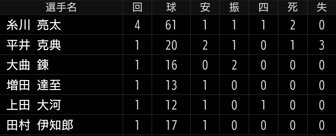 中継ぎは駒はいますが質が低く、先発は髙橋光成、平良海馬の離脱で駒が足りません。