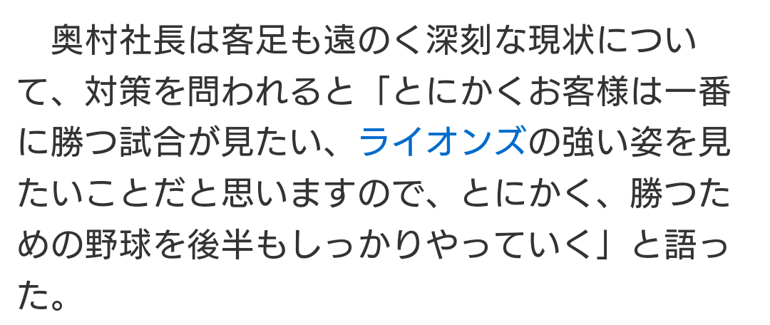 個人的には、ライオンズの選手はライオンズで覚醒し、ライオンズで活躍してもらいたいです。